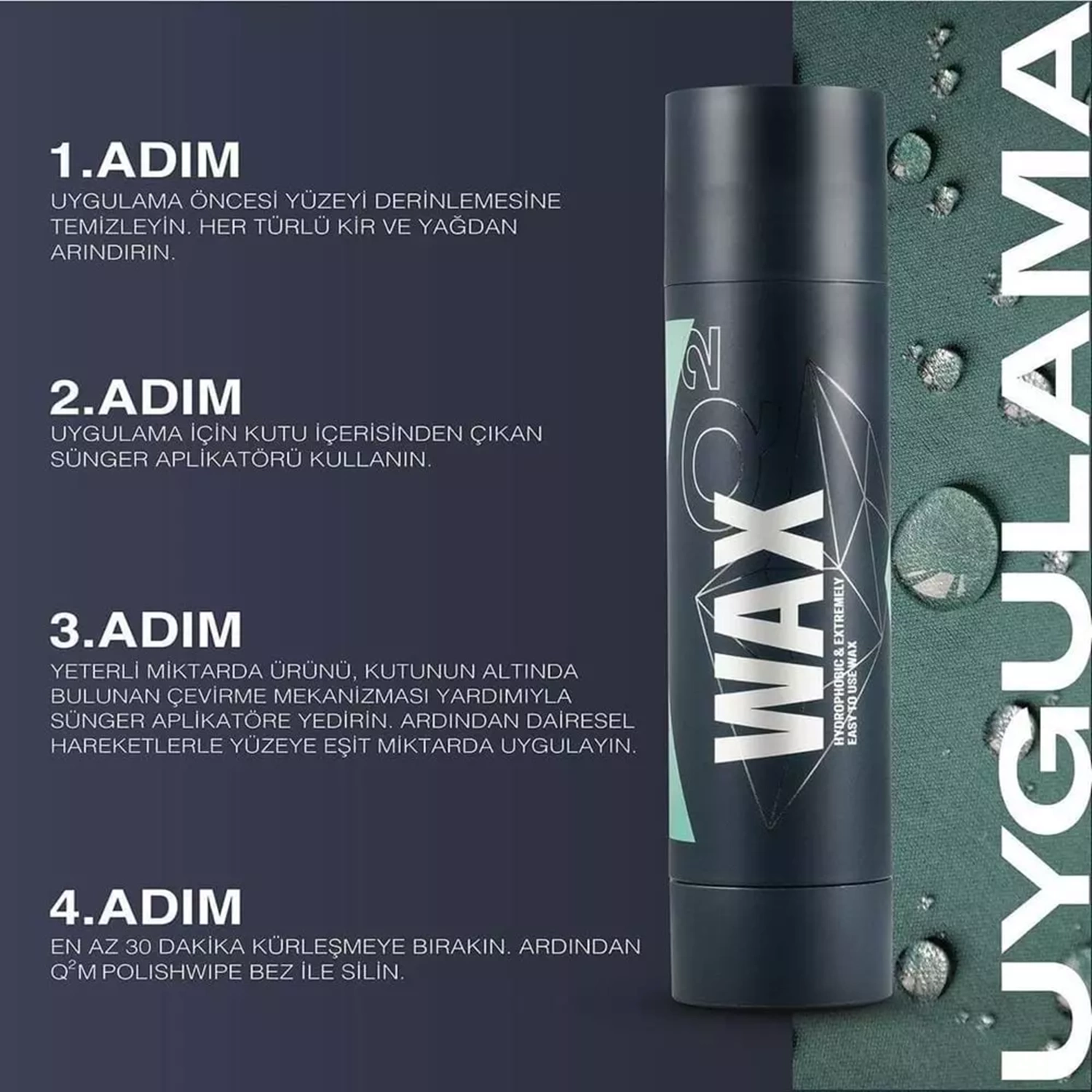GYEON Q² Wax, geleneksel araç bakım ürünlerini yenilikçi kaplama teknolojisini inovatif ambalaj ile sunarak en iyi sonucu verir. Florin desteğiyle mükemmel bir koruma ve kaplama ürünüdür. Yüzeyde ipeksi bir dokunuş hissi bırakırken, aracın orjinal rengini ortaya çıkarır ve parlaklığı arttırır. Hobi kullanıcıları tarafından rahatlıkla kullanılabileceği gibi, profesyonel araç bakım işlemlerinde de kullanılabilir. Tüm araç renkleriyle uyumludur ve olağanüstü bir parlaklık ve kayganlık sunar. Kullanımı ve uygulama sonrası silimi son derece kolaydır ve 6 aya kadar dayanıklılık sağlar.