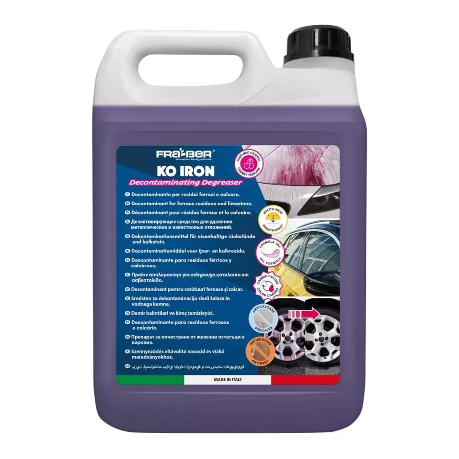 FRA-BER KO IRON ile jant ve kaportanızdaki demir kalıntılarına mor renkli şok tedavisi uygulayın; pürüzsüz, temiz ve parlak bir yüzey elde edin!
