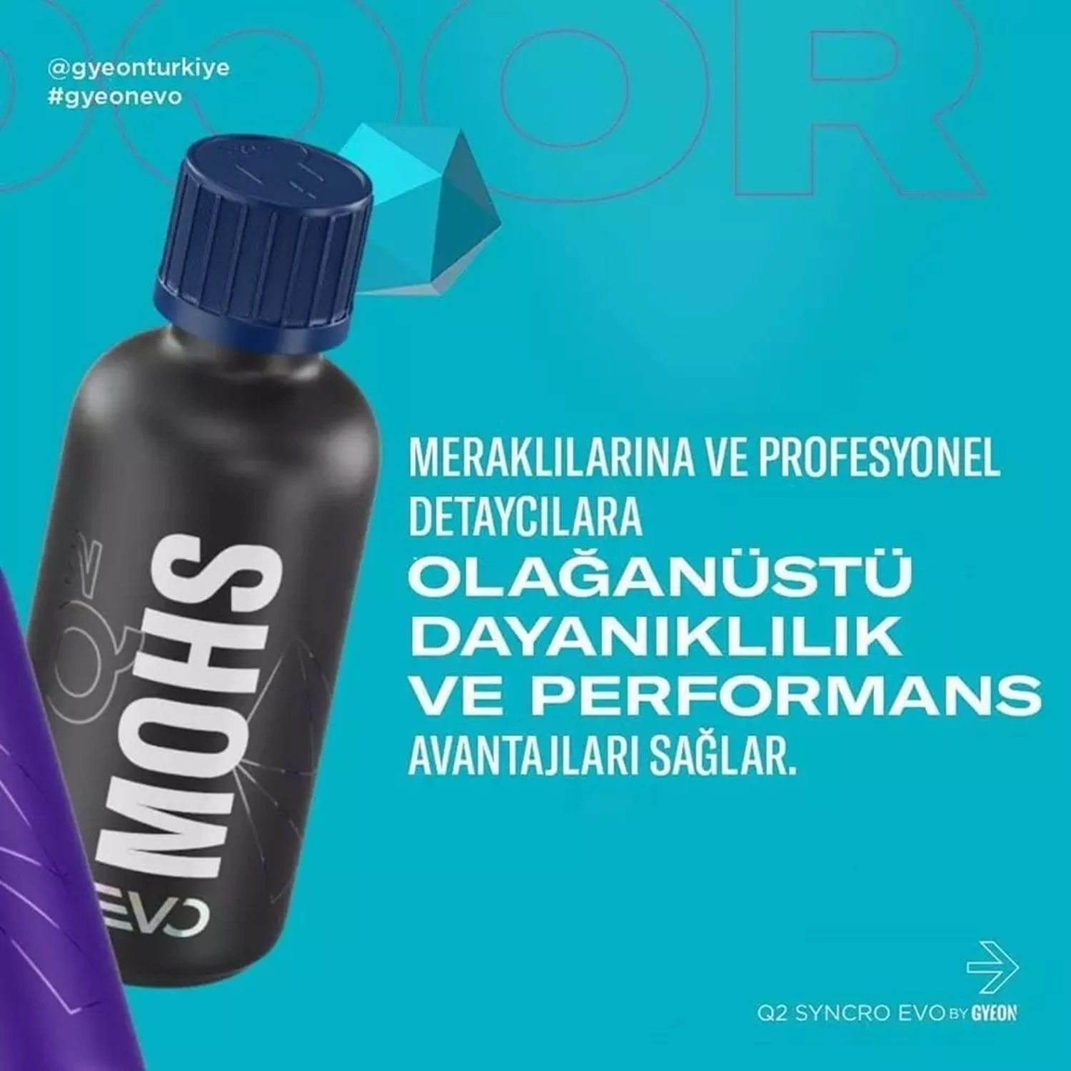Modern boya yüzeylerine uzun ömürlü kristal zırh kazandıran GYEON Q² Syncro EVO Light Box, florür modifiyeli çift katmanlı SiO² matrisiyle 50 ay / 50 000 km’ye kadar 9H sertlik, >120 ° hidrofobi ve göz alıcı derinlik sunar. Mohs EVO + Skin EVO kombinasyonu, hem parlak hem mat boyalarda ipeksi kayganlık ve kolay temizlik sağlar.