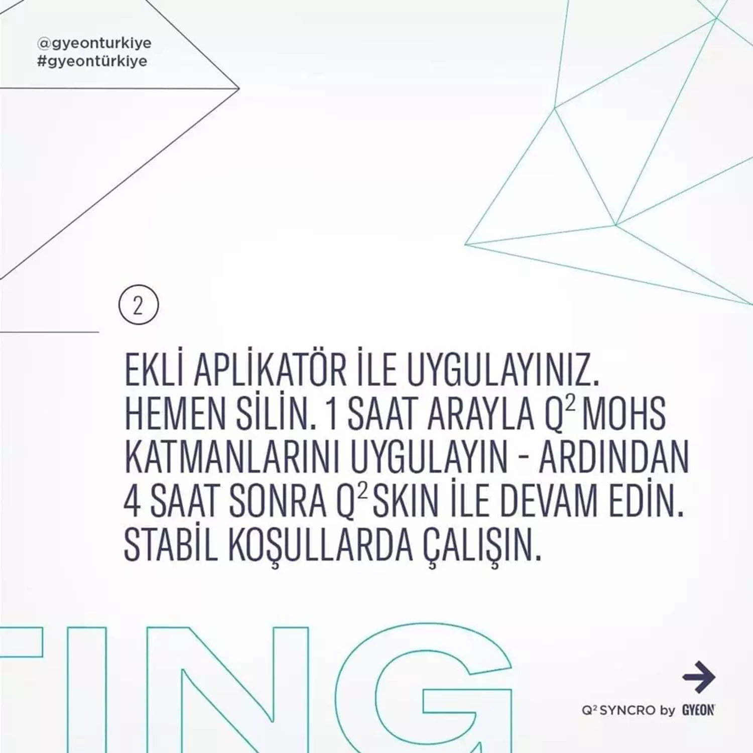o 1. bez (Q²M BaldWipe) kalıntıyı al; 2. bez (Q²M SoftWipe) yüzeyi parlat.