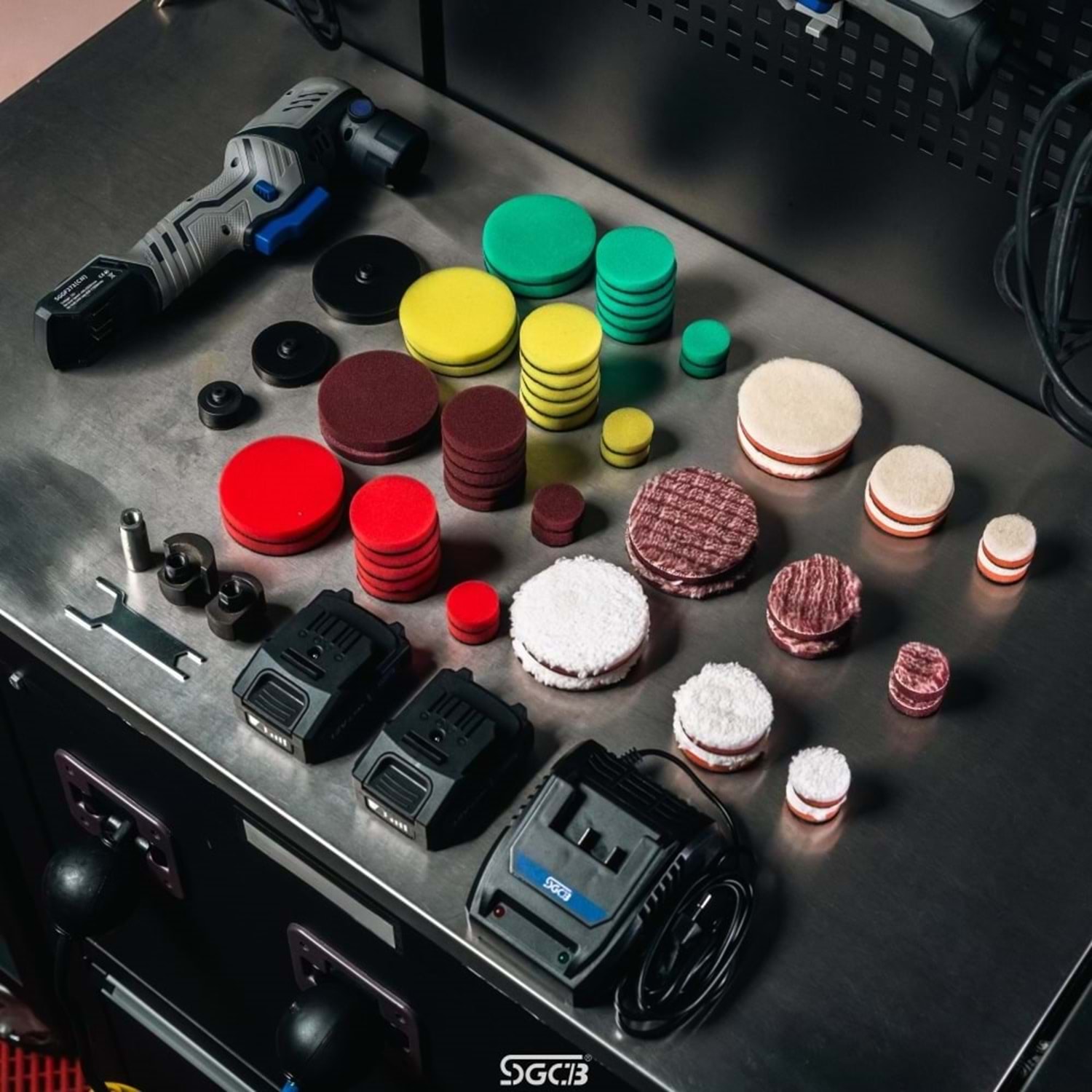 SGCB kablosuz şarjlı rotary/orbital mini nano polisaj makinesi, 3 farklı dönüş özelliğini tek bir cihazda sunan, 65 parçalı zengin aksesuar setine sahip yenilikçi bir polisaj makinesidir. Uzun ömürlü fırçasız motor teknolojisi sayesinde minimum ısınma, yüksek performans ve dayanıklılık sağlar. Kablosuz çalışma özelliği, priz bağımlılığını ortadan kaldırarak maksimum hareket özgürlüğü sunar.